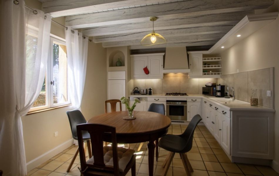 Le gîte dispose d'une superficie de 115 m², peut accueillir jusqu'à 6 personnes. Il dispose de trois chambres spacieuses, dont une au rez-de-chaussée avec salle d'eau attenante, et deux à l'étage partageant une salle de bain moderne. La cuisine ouverte, entièrement équipée, s'harmonise avec un salon chaleureux agrémenté d'une cheminée, créant une ambiance conviviale.